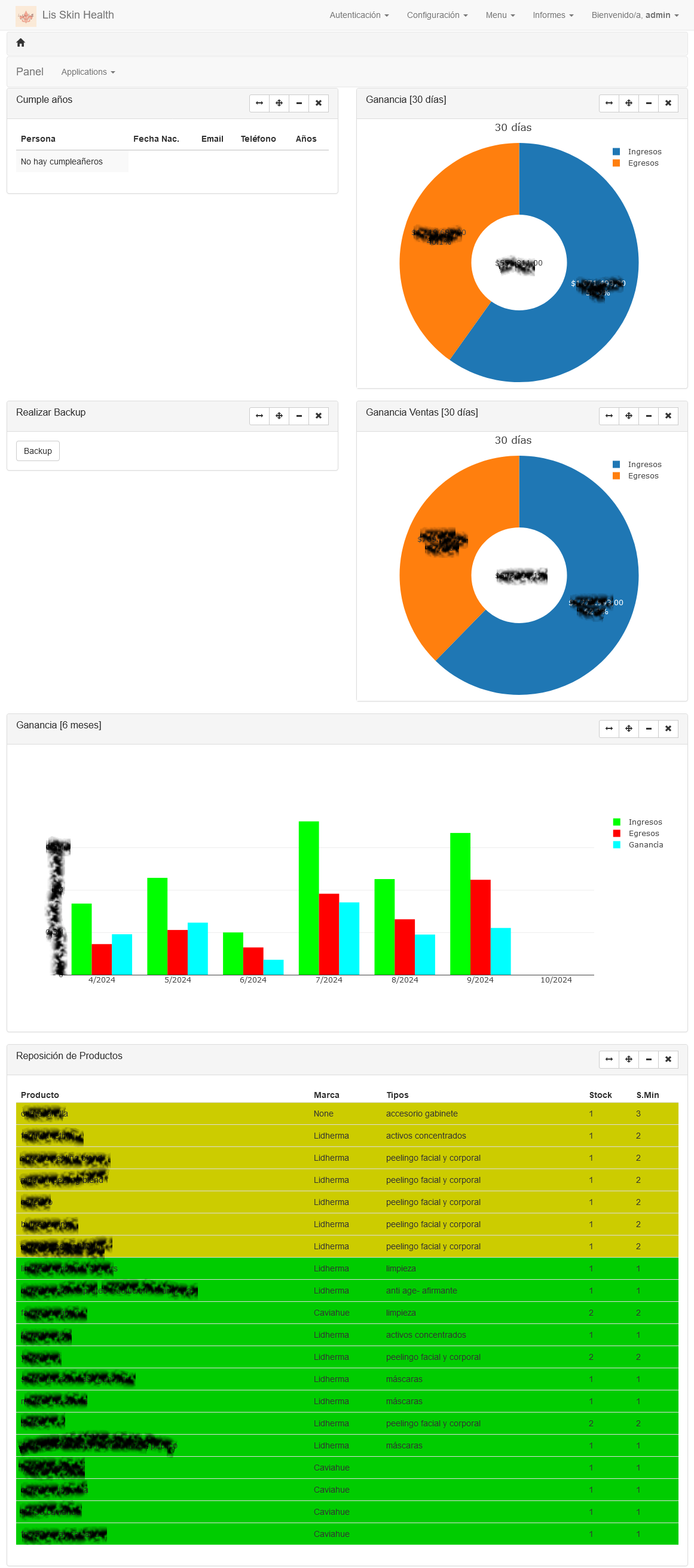 VerSistema para el registro de turnos, tratamiento faciales, stock, compra y venta de productos.
