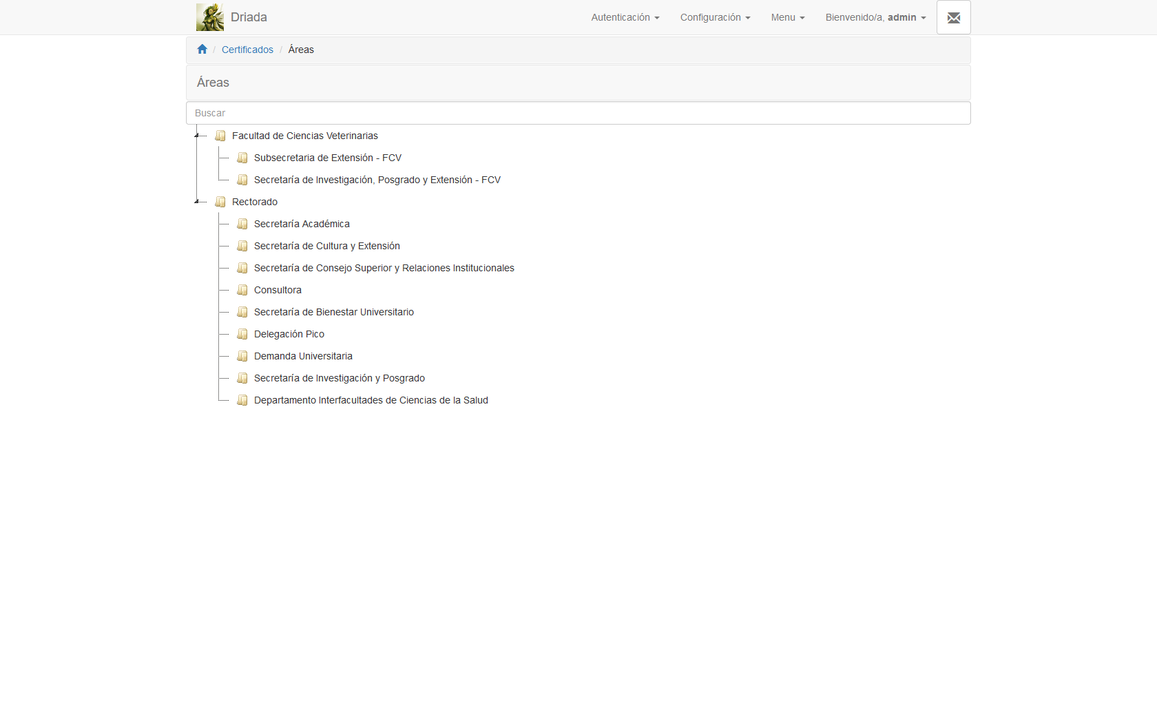 Sistema para la gestión de certificados. - Permite administrar las plantillas, firmas, actividades, eventos, inscriptos. QR para verificar los certificados. - Administración por áreas.